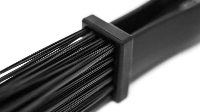Den ergonomiske form og det skridsikre håndtag sikrer komfortabel brug, og børstehårene er hårde nok til effektivt at fjerne snavs, olie og vejskidt, samtidig med at de er skånsomme mod kædens materiale.